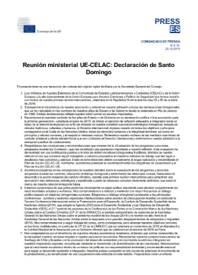 Reunión ministerial UE-CELAC: Declaración de Santo Domingo. 10 de octubre de 2016