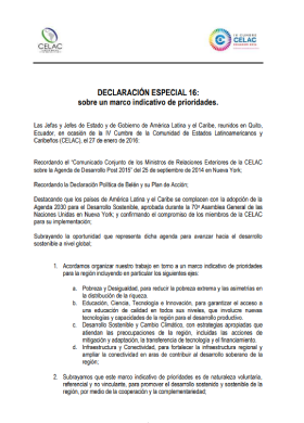 Declaración especial 16: sobre un marco indicativo de prioridades. IV Cumbre CELAC