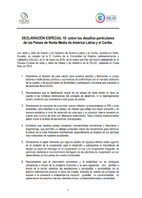 Declaración especial 18: sobre los desafíos particulares de los Países de Renta Media de América Latina y el Caribe. IV Cumbre CELAC