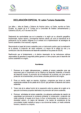 Declaración Especial 10: sobre Turismo Sostenible. IV Cumbre CELAC