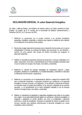 Declaración especial 14: sobre Desarrollo Energético. IV Cumbre CELAC