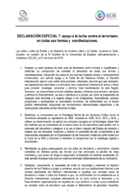 Declaración especial 7: apoyo a la lucha contra el terrorismo en todas sus formas y manifestaciones. IV Cumbre CELAC