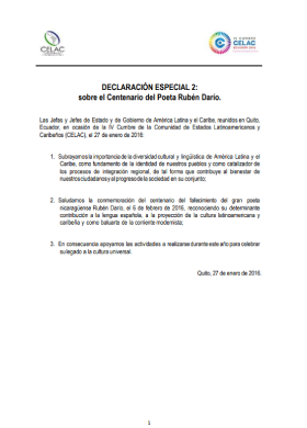 Declaración especial 2: sobre el Centenario del Poeta Rubén Darío. IV Cumbre CELAC
