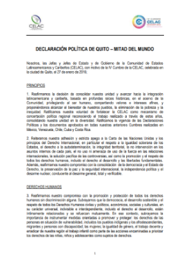 CELAC: Declaración Política de Quito – Mitad del Mundo