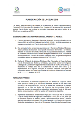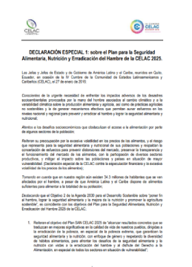 Declaración especial 1: sobre el Plan para la Seguridad Alimentaria Nutrición y Erradicación del Hambre de la CELAC 2025. IV Cumbre CELAC