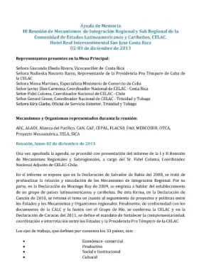 Ayuda de Memoria de la III Reunión de Mecanismos de Integración Regional y Sub Regional de la Comunidad de Estados Latinoamericanos y Caribeños (CELAC)