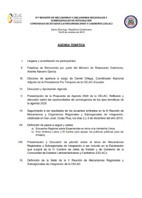 Agenda de la IV Reunión de Mecanismos y Organismos Regionales y Subregionales de Integración. Comunidad de Estados Latinoamericanos y Caribeños (CELAC)