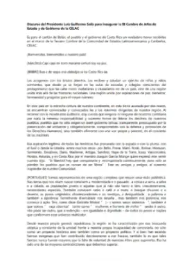 Discurso del Presidente Luis Guillermo Solis para inaugurar la III Cumbre de Jefes de Estado y de Gobierno de la CELAC