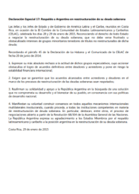Declaracion 17 Respaldo a Argentina en reestructuración de su deuda soberana