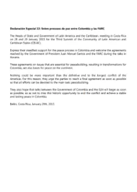 Declaracion 22 Sobre procesos de paz entre Colombia y las FARC