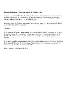 Declaracion 23 Sobre la ctuacion de CELAC y ONU
