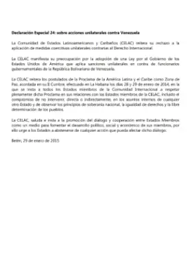 Declaracion 24 Sobre acciones unilaterales contra Venezuela