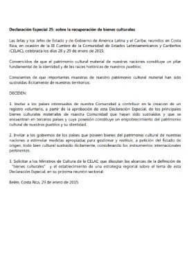 Declaracion 25 Sobre la recuperacion de bienes culturales