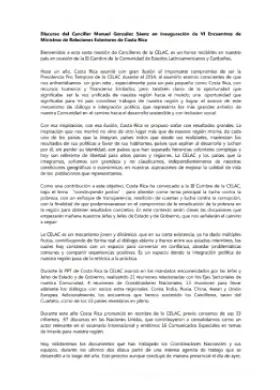Discurso del Canciller Manuel Gonzalez Saenz en inauguracion de VI Encuentros de Ministros de Relaciones Exteriores de Costa Rica