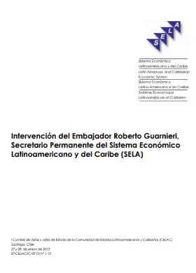 Intervención del Embajador Roberto Guarnieri, Secretario Permanente del Sistema Económico Latinoamericano y del Caribe (SELA) en la I Cumbre de Jefas y Jefes de Estado de la Comunidad de Estados Latinoamericanos y Caribeños (CELAC)