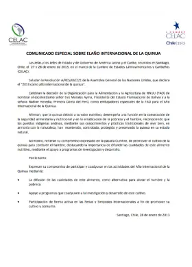 Comunicado especial sobre el Año Internacional de la Quinua