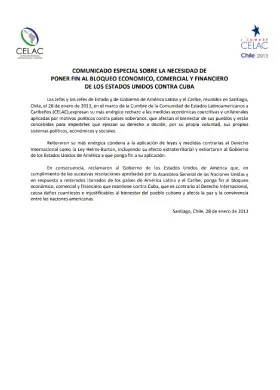 Comunicado especiaL sobre la necesidad de poner fin al bloqueo económico, comercial y financiero de los Estados Unidos contra Cuba