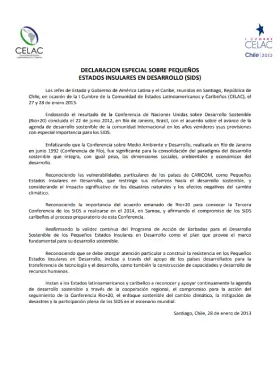 Declaración especial sobre pequeños estados insulares en desarrollo (SIDS)