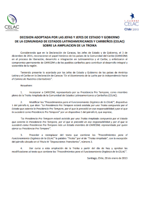 Decisión adoptada por las Jefas y Jefes de Estado y Gobierno de la Comunidad de Estados Latinoamericanos y Caribeños (CELAC) sobre la ampliación de la Troika
