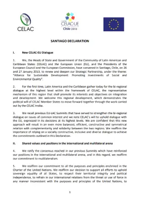Declaración de Santiago CELAC-UE [Comunidad de Estados Latinoamericanos y Caribeños – Unión Europea]