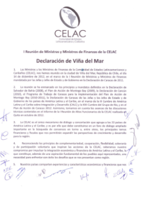 I Reunión de Ministras y Ministros de Finanzas de la CELAC Viña del Mar, Chile. 14 de diciembre de 2012.