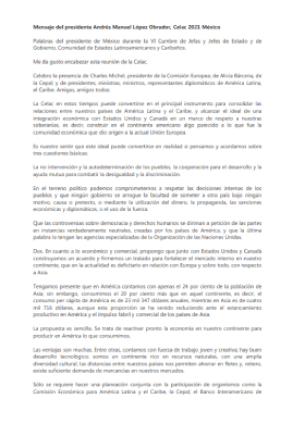 Mensaje del Presidente Andrés Manuel López Obrador, Celac 2021 México