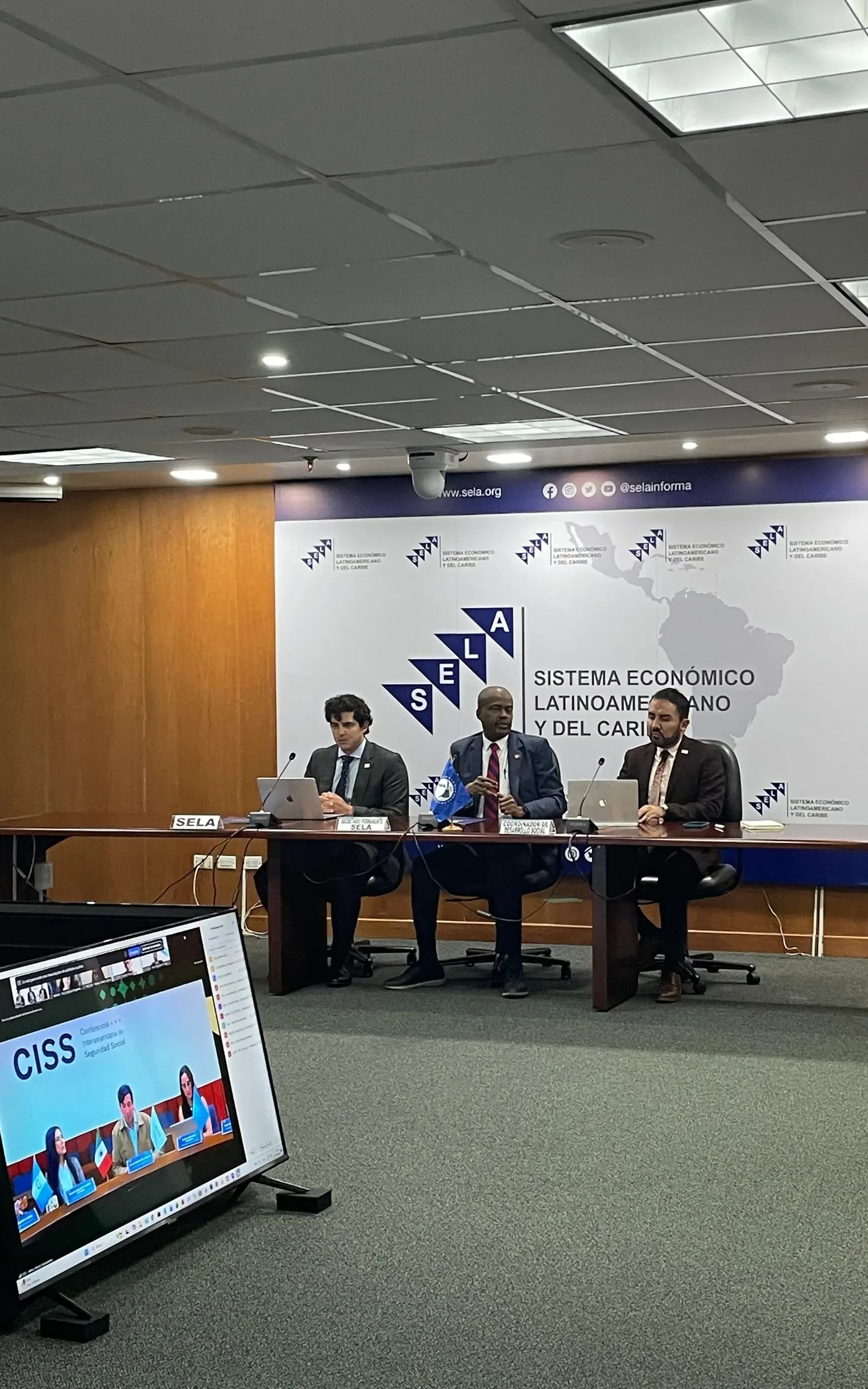 El Secretario Permanente del SELA, Embajador Lesly David, destacó que la migración es una oportunidad para fortalecer nuestras economías y construir sociedades más inclusivas. A su vez, subrayó que la inclusión de las personas migrantes no debe entenderse únicamente como un reto social, sino como un factor clave para el desarrollo económico, la estabilidad y la cohesión social. En este sentido, enfatizó que el acceso efectivo a la seguridad social resulta indispensable para una verdadera integración y para avanzar hacia un desarrollo sostenible en América Latina y el Caribe.